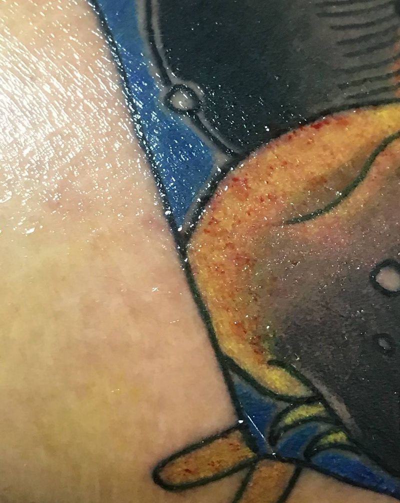 • T包小腿吹火男+阿多福纹身图片_腿部老传统新传统吹火男阿