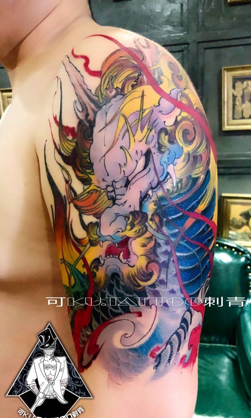 当前位置: 首页 >河南省郑州市纹身店-可KU·tattoo刺青纹身图案>麒麟纹身图片_成品手臂传统鬼神纹身图案