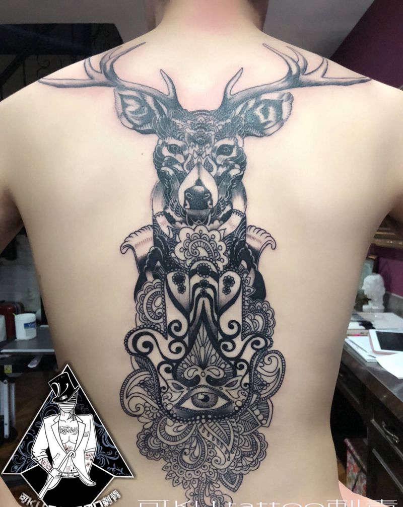 当前位置: 首页 >河南省郑州市纹身店-可KU·tattoo刺青纹身图案>鹿纹身图片_成品背部欧美几何动物原创纹身图案
