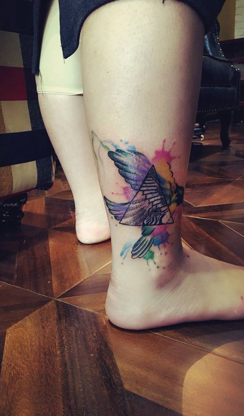 • T包小腿吹火男+阿多福纹身图片_腿部老传统新传统吹火男阿