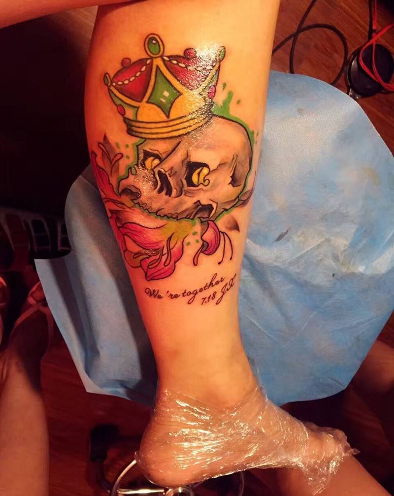• T网红王老大花腿龙纹身图片_腿部新传统纹身图案