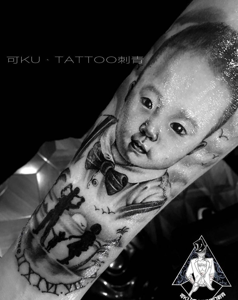 当前位置: 首页 >河南省郑州市纹身店-可KU·tattoo刺青纹身图案>人物纹身图片_成品手臂写实肖像欧美人物原创纹身图案
