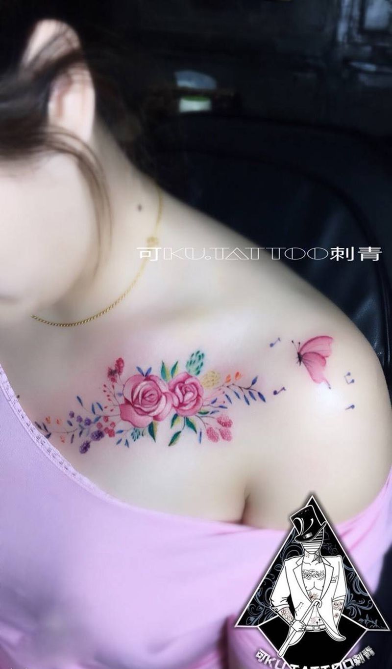 当前位置: 首页 >河南省郑州市纹身店-可KU·tattoo刺青纹身图案>肩头花纹身图片_成品胸部清新植物纹身图案