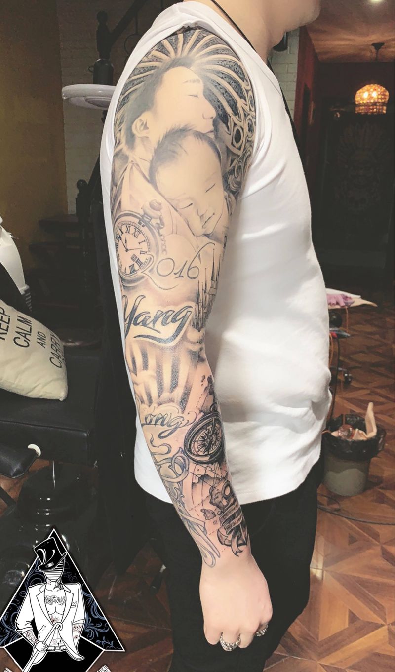 当前位置: 首页 >河南省郑州市纹身店-可KU·tattoo刺青纹身图案>花臂拼接纹身图片_手臂欧美写实纹身图案