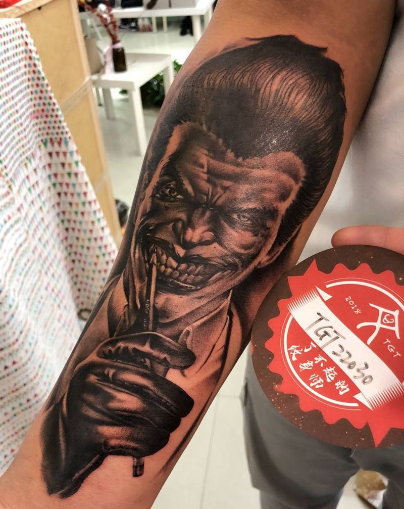 小丑纹身图片_手臂手部欧美写实小丑纹身图案