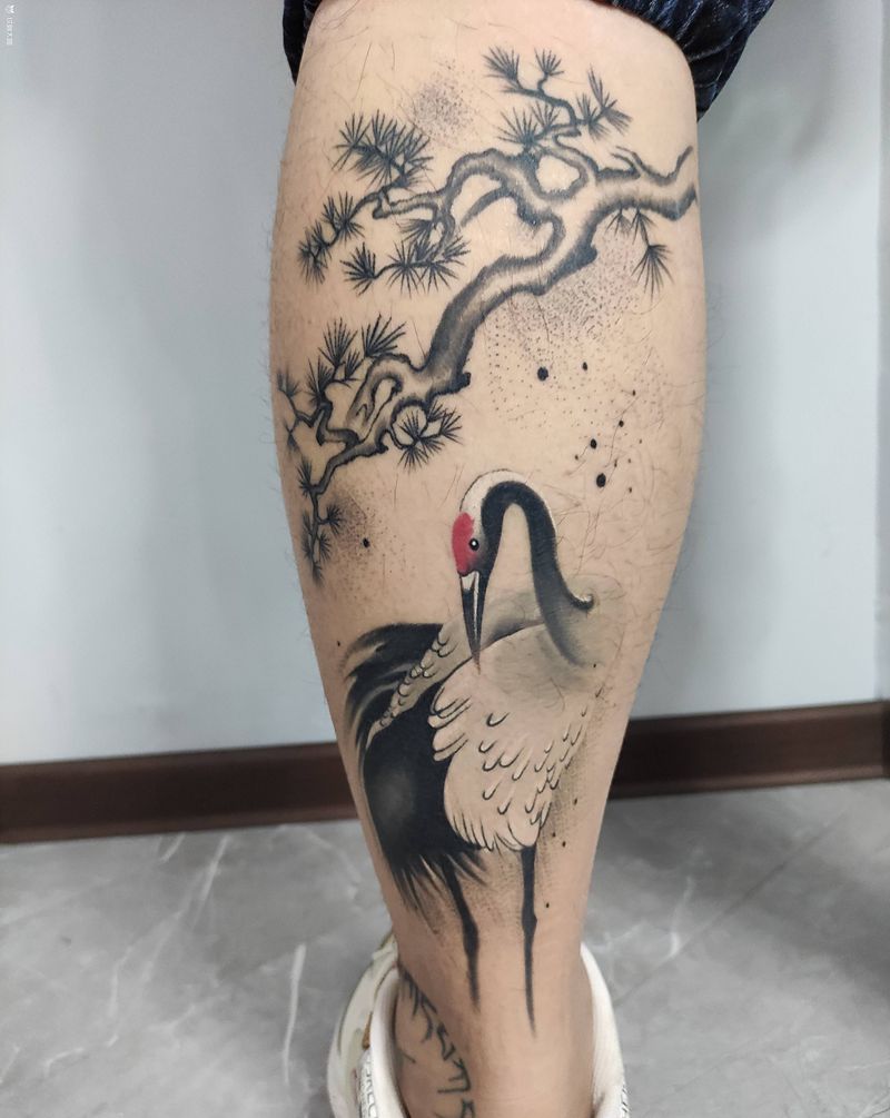 当前位置: 首页 >河南省郑州市纹身店-铁骑刺青纹身图案>般若与鹤纹身图片_腿部新传统纹身图案