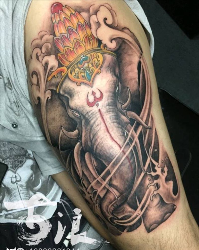 当前位置: 首页 >河南省郑州市纹身店-郑州古浪刺青纹身图案>六牙象王纹身图片_腿部老传统象神纹身图案