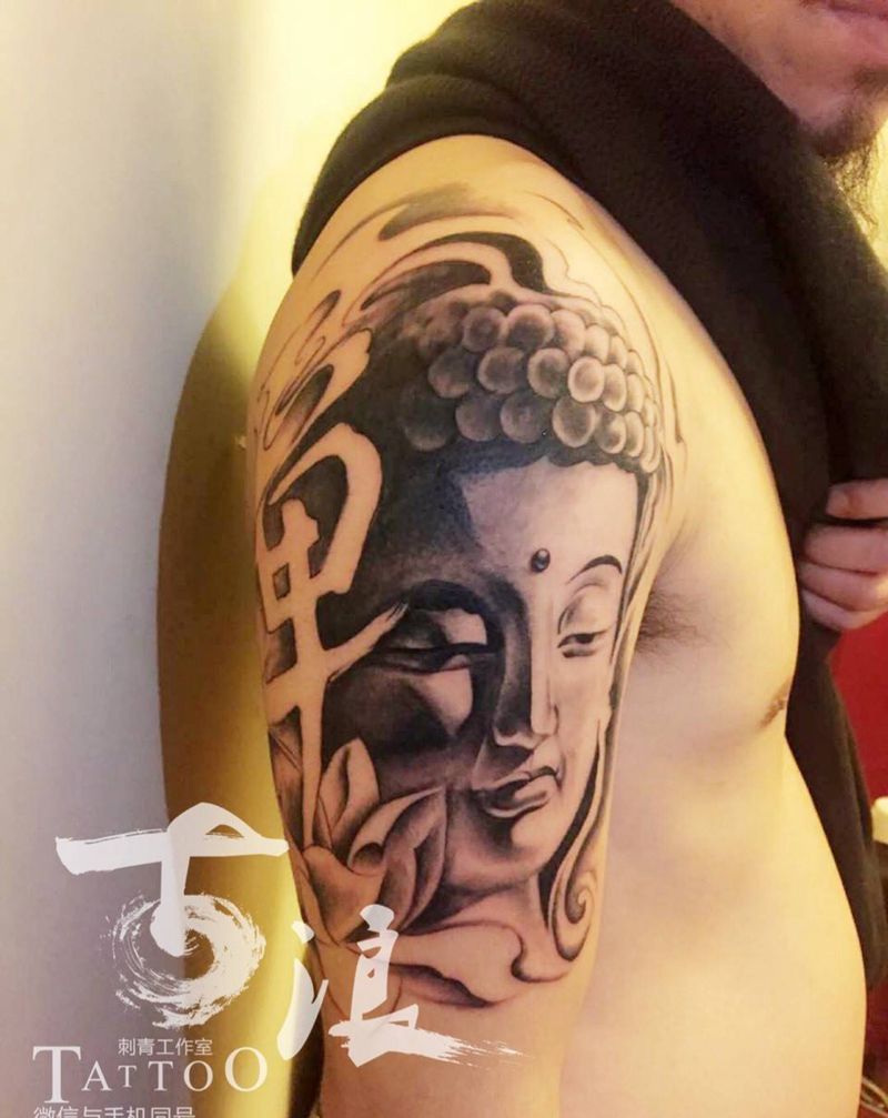 当前位置: 首页 >河南省郑州市纹身店-郑州古浪刺青纹身图案>禅佛纹身图片_成品手臂肩部传统肖像写实人物宗教鬼神纹身图案