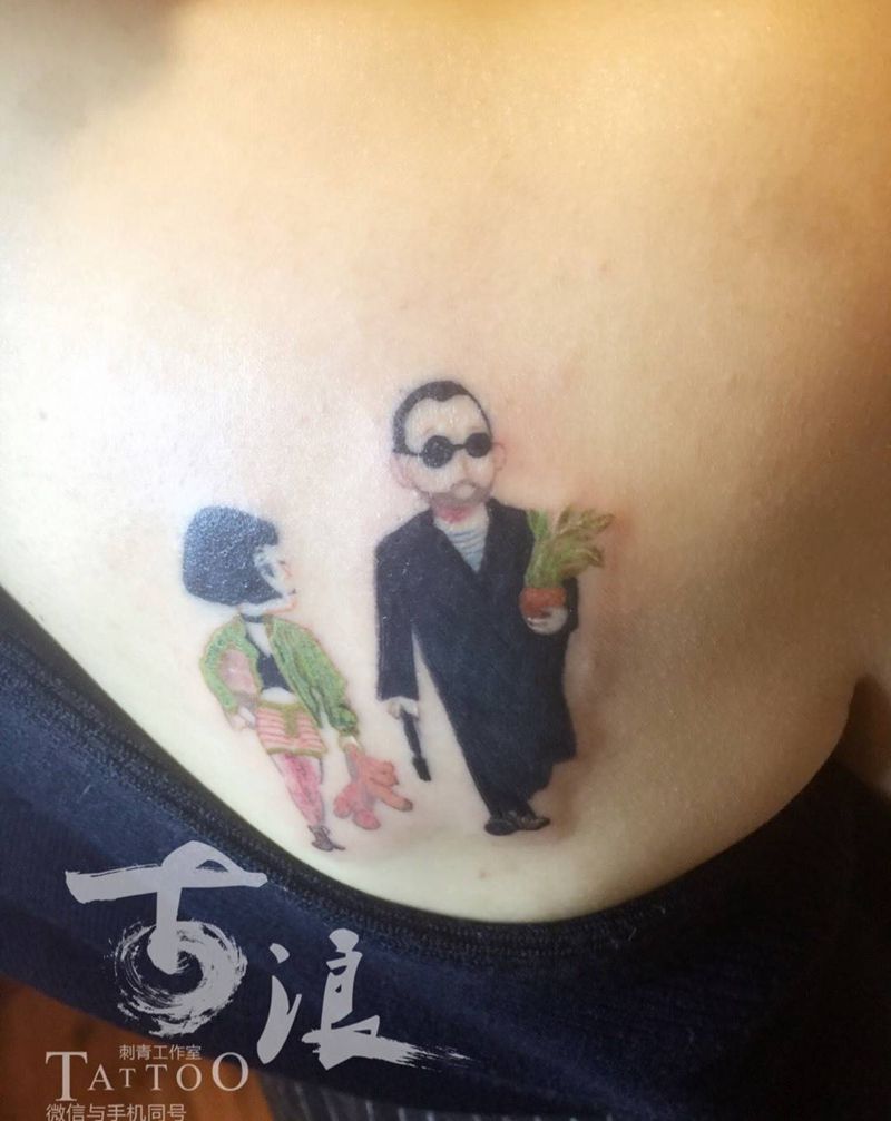 这个杀手不太冷纹身图片_成品背部欧美清新人物情侣手臂纹身图案