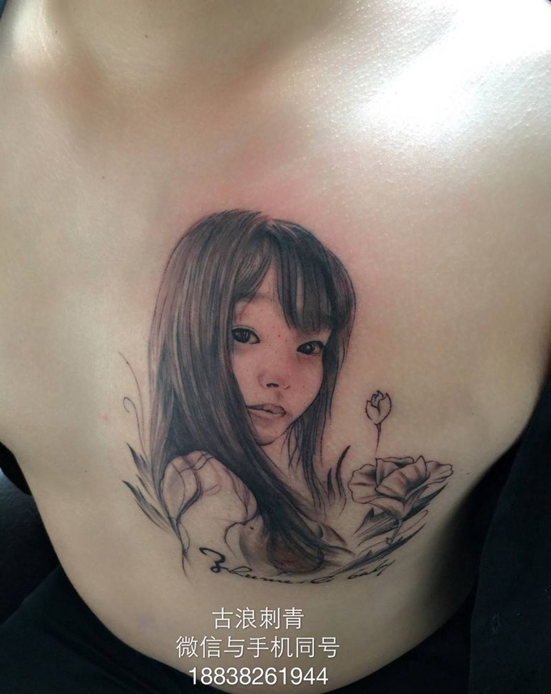 • 女性大花胸纹身_43张霸气漂亮的女性大花胸纹身图案作品