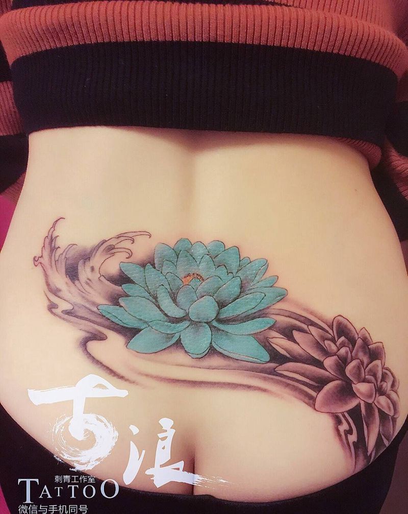 青莲纹身图片_成品臀部清新植物静物情侣原创纹身图案