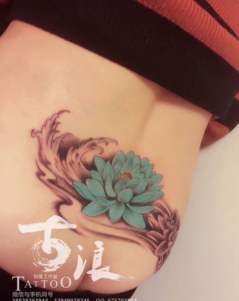 青莲纹身图片_成品臀部清新植物静物情侣原创纹身图案