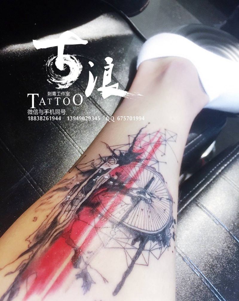 当前位置: 首页 >河南省郑州市纹身店-郑州古浪刺青纹身图案>写意 自行车纹身图片