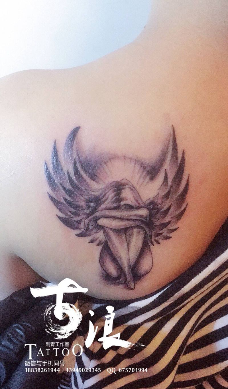 当前位置: 首页 >河南省郑州市纹身店-郑州古浪刺青纹身图案>坠落天使纹身图片_成品颈部手臂背部脚部鬼神原创情侣人物传统纹身图案