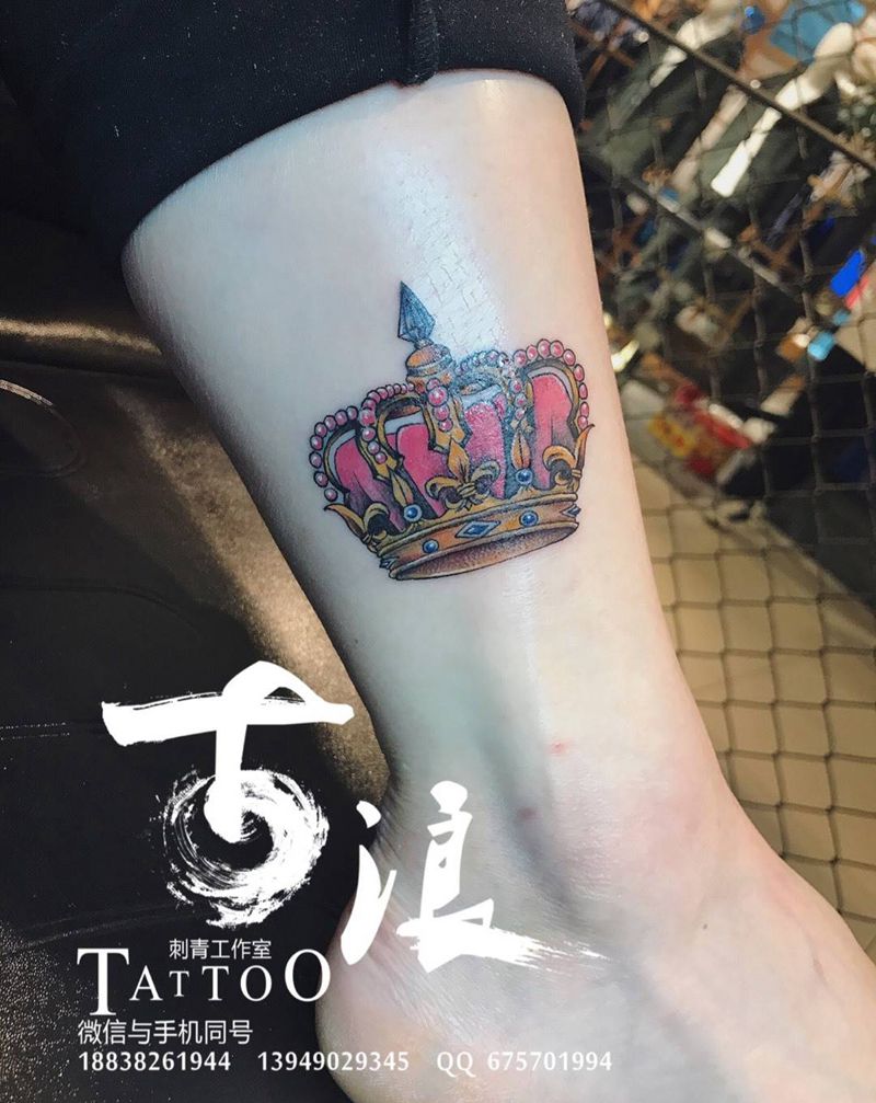 自主设计皇冠纹身图片_手稿成品腿部脚部传统欧美清新写实原创情侣纹身图案