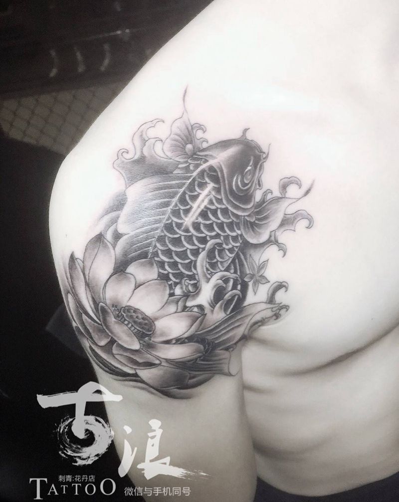 当前位置: 首页 >河南省郑州市纹身店-郑州古浪刺青纹身图案>锦鲤 肩部纹身图片_成品纹身图案