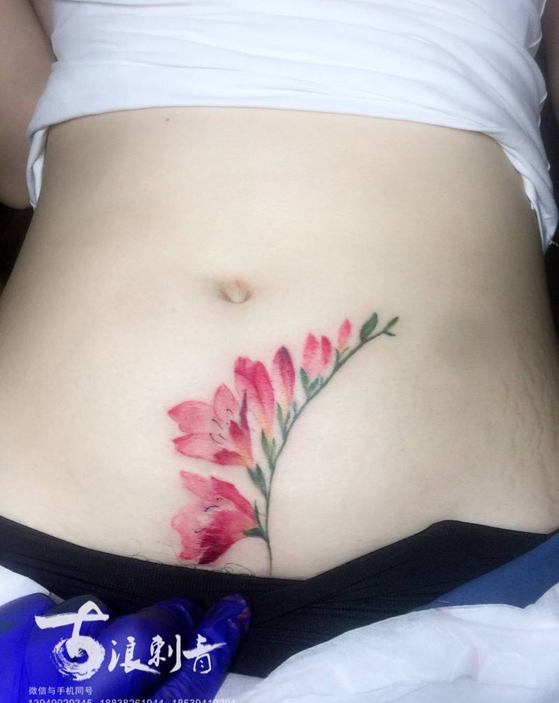 • 时尚性感的腹部莲花纹身图案