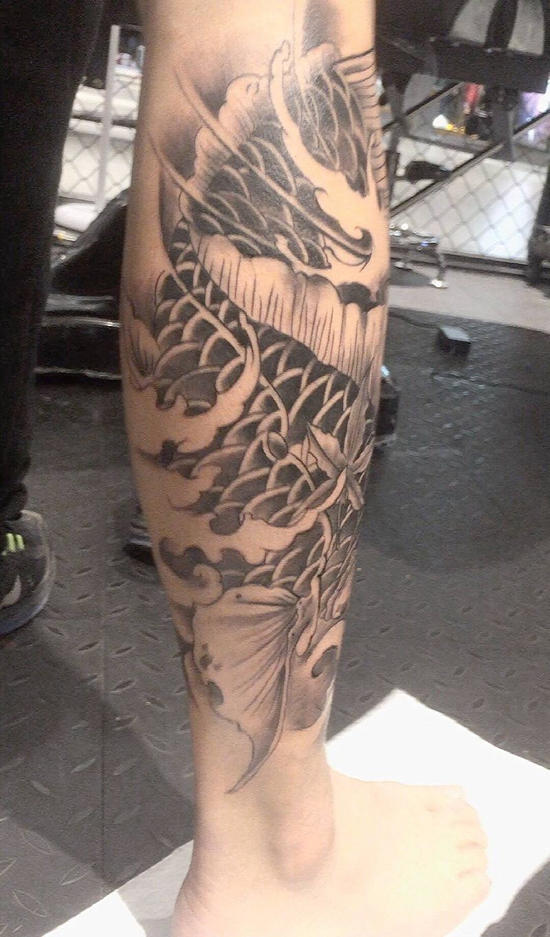 • T网红王老大花腿龙纹身图片_腿部新传统纹身图案