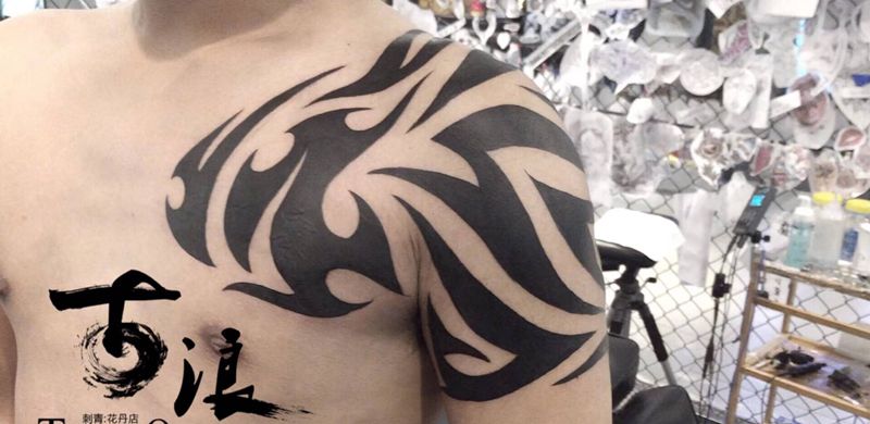 • 纹身吧推荐的披肩图腾半胛纹身图案作品展示