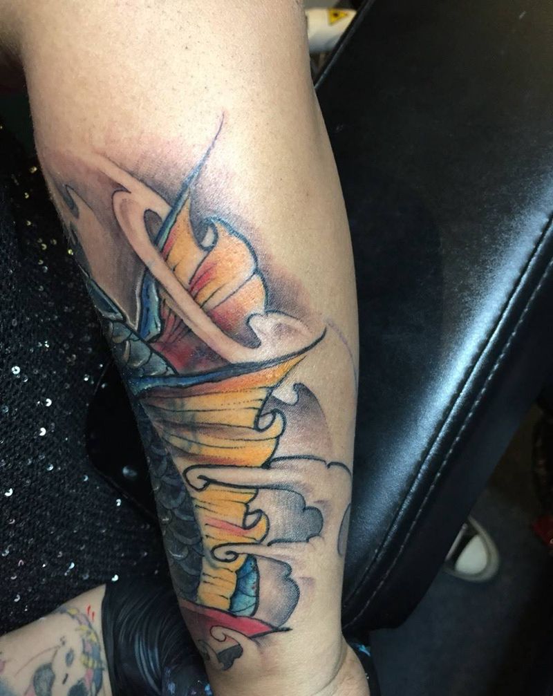 • T网红王老大花腿龙纹身图片_腿部新传统纹身图案