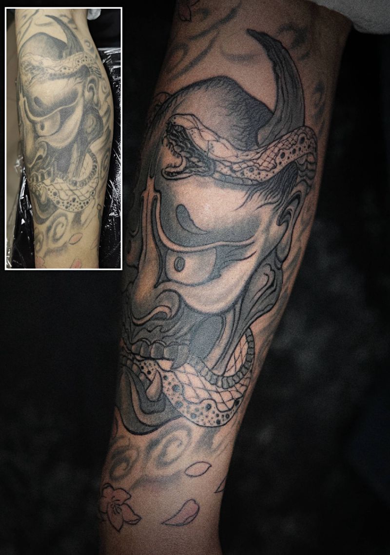 旧图精修未完(线条部分)纹身图片_手臂手部老传统新传统般若遮盖修改纹身图案