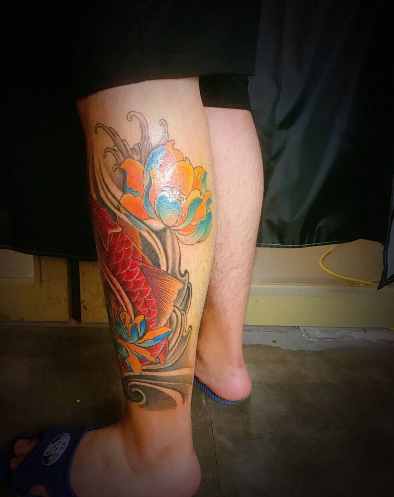 • T网红王老大花腿龙纹身图片_腿部新传统纹身图案