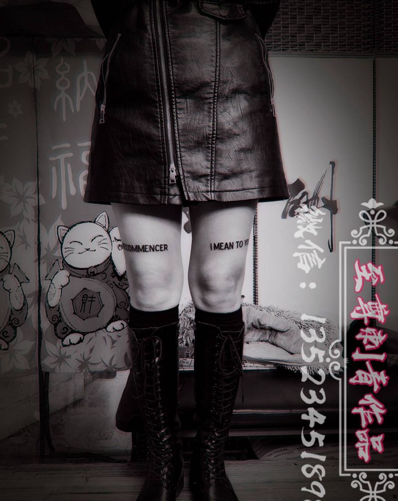 英文纹身图片_腿部花体字纹身图案