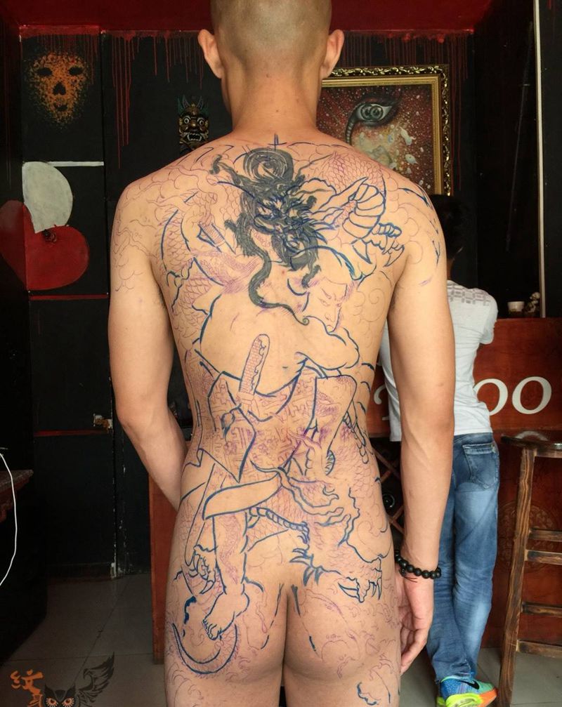 • T云龙九郎纹身图片_背部老传统云龙九郎纹身图案