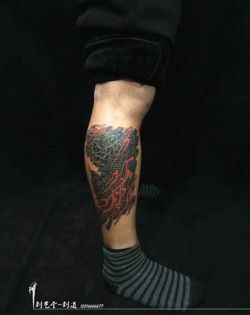 • T网红王老大花腿龙纹身图片_腿部新传统纹身图案