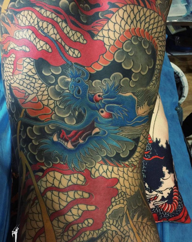 • T云龙九郎纹身图片_背部老传统云龙九郎纹身图案