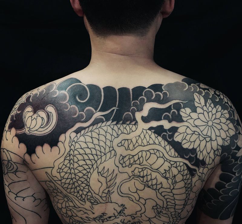• T云龙九郎纹身图片_背部老传统云龙九郎纹身图案