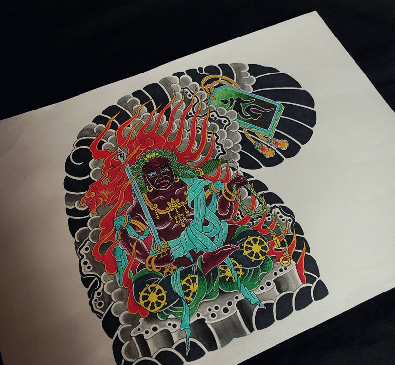 近日绘制#老派传统半胛#不动明纹身图片_老传统纹身图案