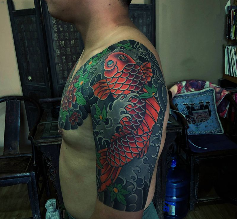 当前位置: 首页 >河南省鹤壁市纹身店-刺艺堂—刺道纹身图案>半胛《锦鲤》恢复一年后~纹身图片_老传统纹身图案