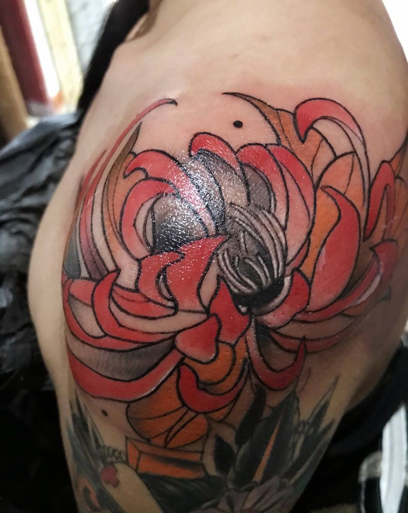 当前位置: 首页 >河南省平顶山市纹身店-汝州无二纹道纹身图案>花臂拼接肩部纹身图片_肩部Old School纹身图案