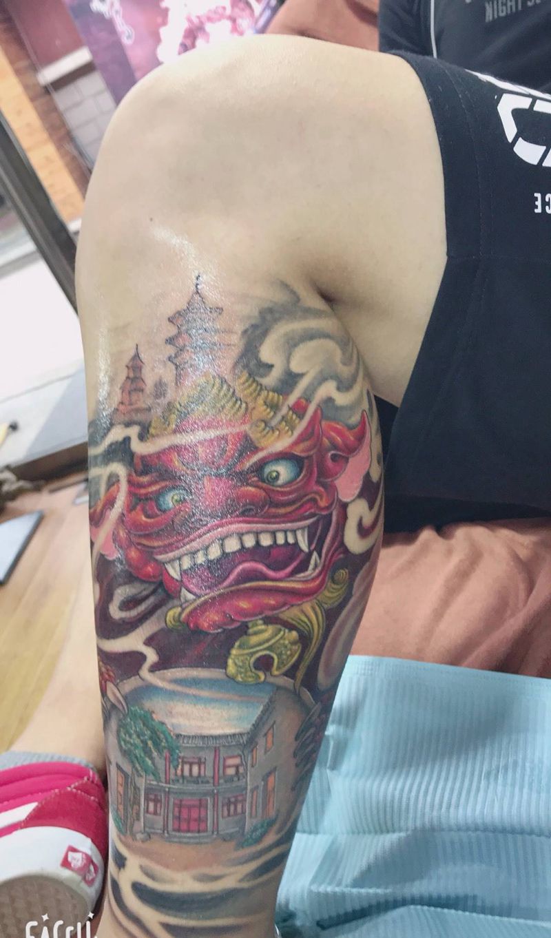 当前位置: 首页 >河南省鹤壁市纹身店-鬼斧刺青工作室纹身图案>小腿唐狮纹身图片