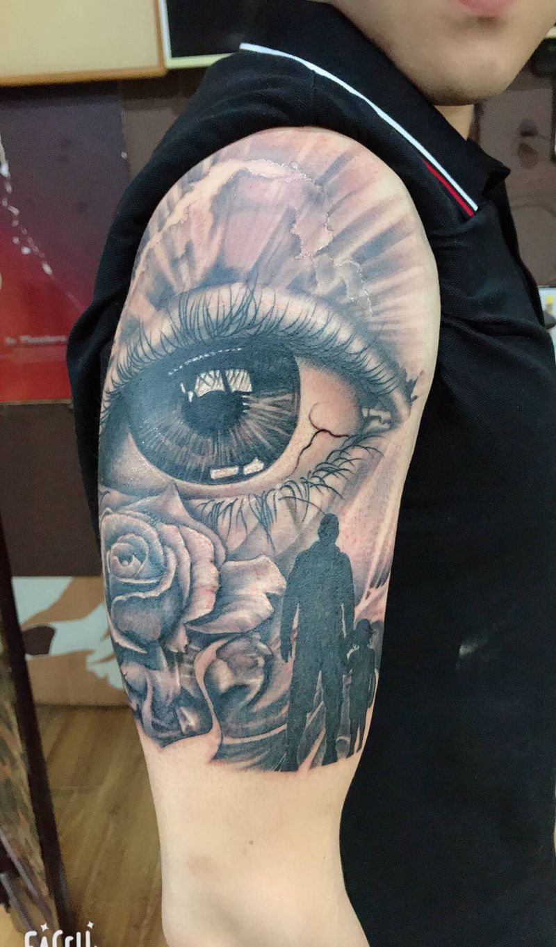 • 纹身吧推荐的披肩图腾半胛纹身图案作品展示