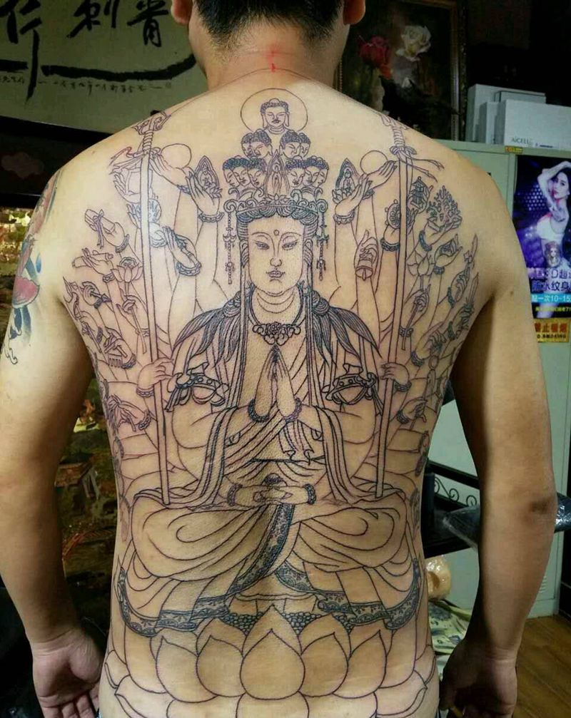 当前位置: 首页 >河南省鹤壁市纹身店-鬼斧刺青工作室纹身图案>千手观音待续纹身图片