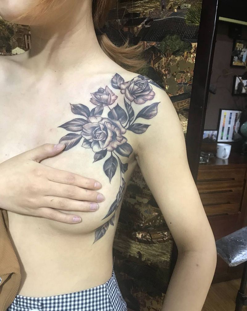 • 女性大花胸纹身_43张霸气漂亮的女性大花胸纹身图案作品
