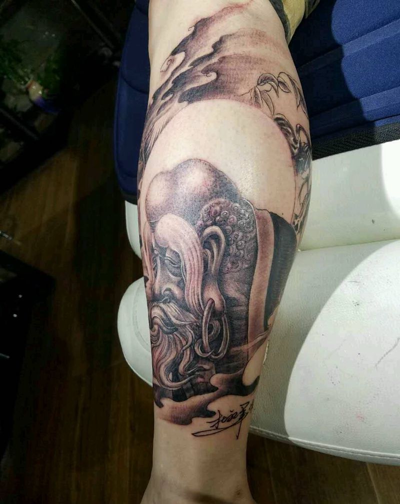 • T网红王老大花腿龙纹身图片_腿部新传统纹身图案