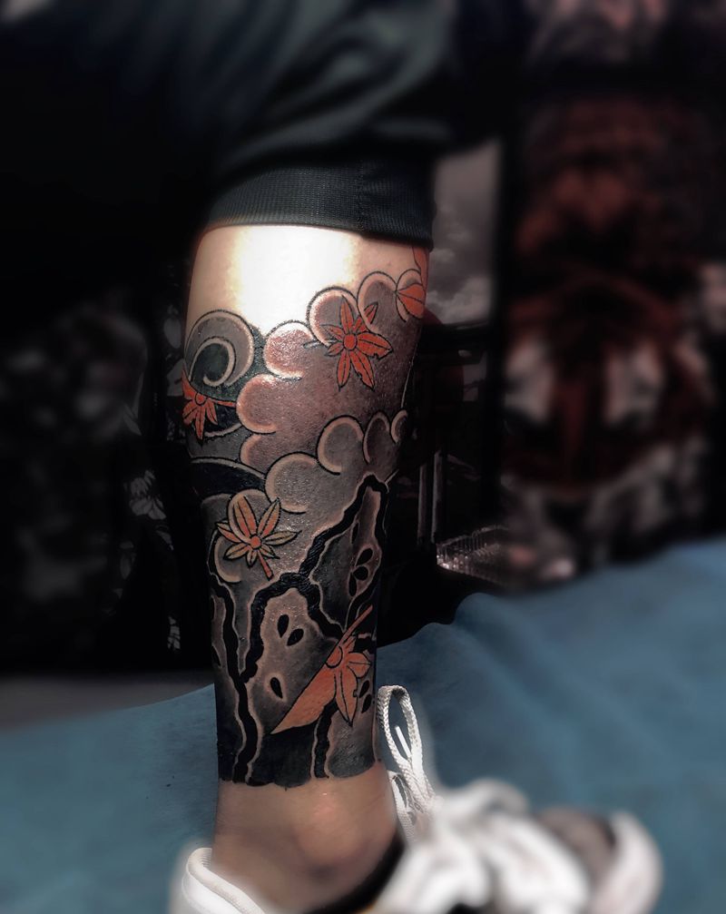 • T网红王老大花腿龙纹身图片_腿部新传统纹身图案