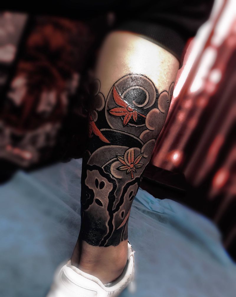 当前位置: 首页 >河南省洛阳市纹身店-壹玖零伍刺青纹身图案>老传统小腿纹身图片_腿部老传统纹身图案