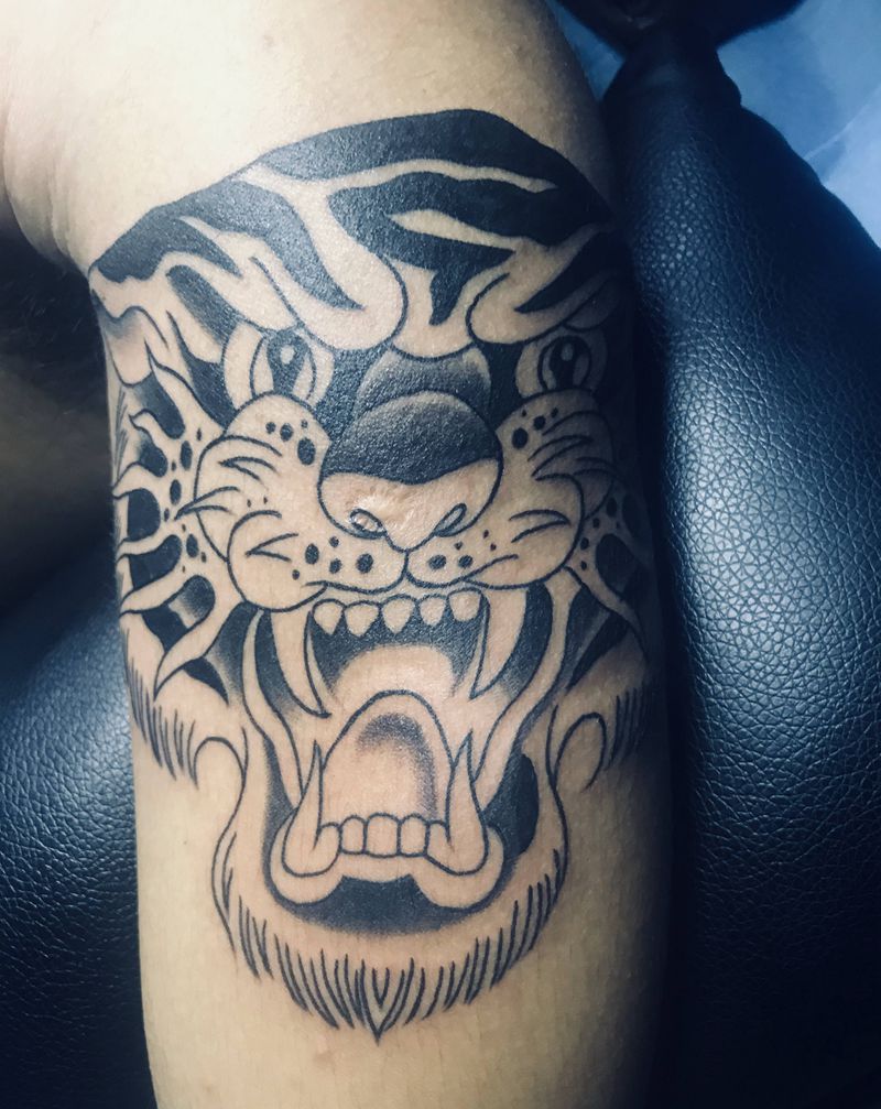当前位置: 首页 >河南省洛阳市纹身店-壹玖零伍刺青纹身图案>老虎纹身图片_手臂Old School纹身图案