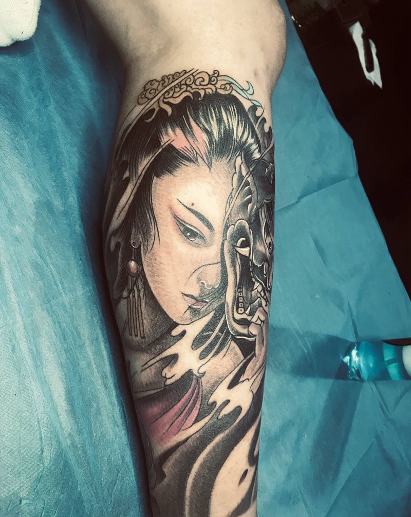 当前位置: 首页 >河南省洛阳市纹身店-壹玖零伍刺青纹身图案>艺妓纹身图片_腿部新传统纹身图案