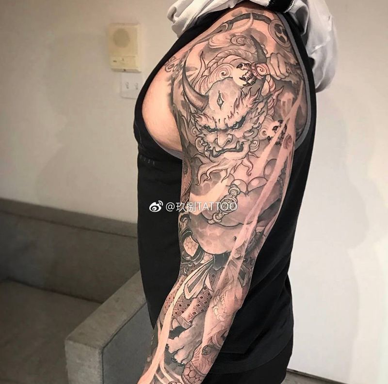 黑灰满背纹身图案