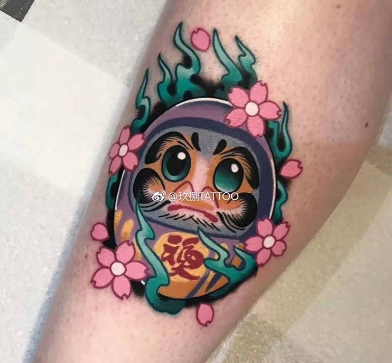 • T包小腿吹火男+阿多福纹身图片_腿部老传统新传统吹火男阿