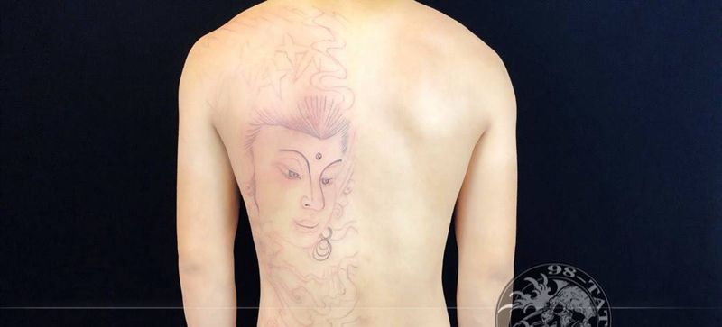 黑灰满背纹身图案