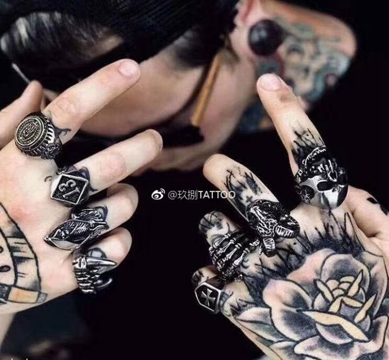 • 手背潮流时尚的玫瑰花眼睛纹身图案