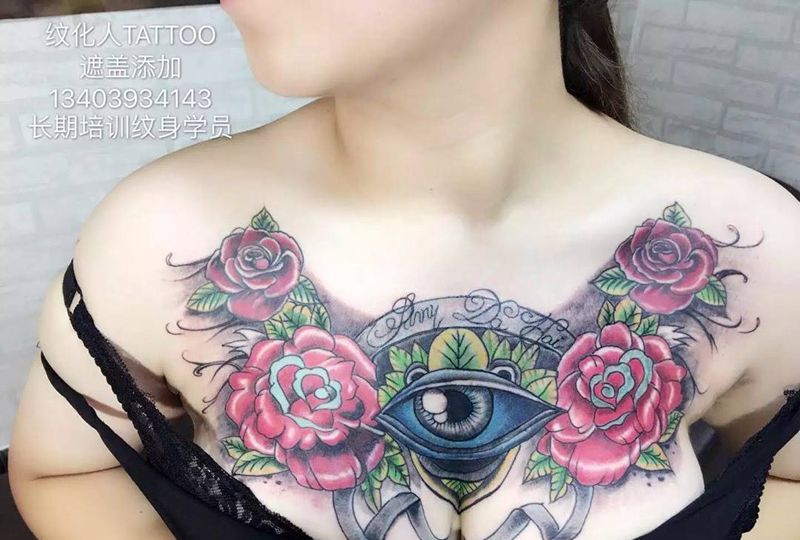 • 女性大花胸纹身_43张霸气漂亮的女性大花胸纹身图案作品