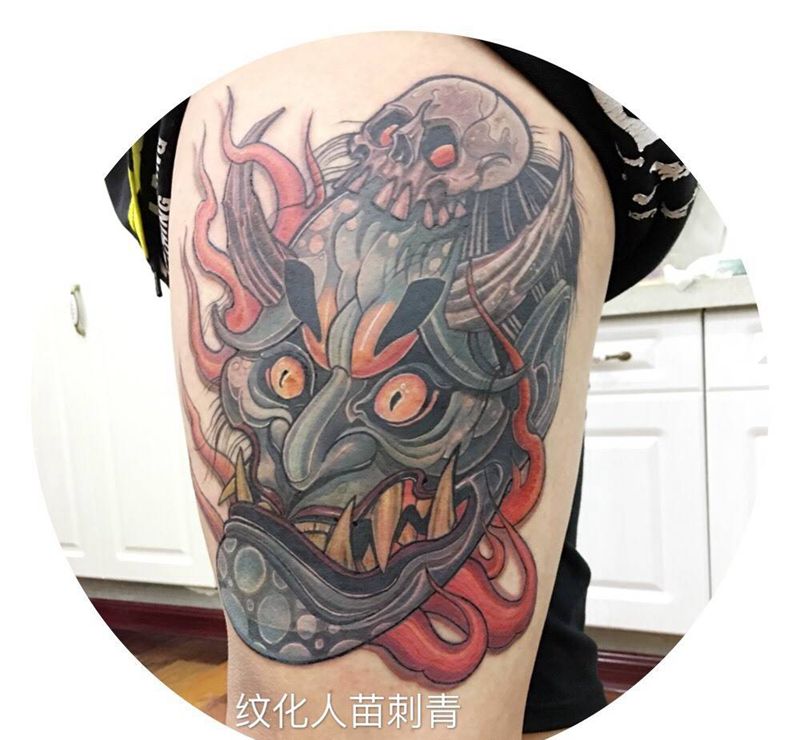 • T网红王老大花腿龙纹身图片_腿部新传统纹身图案