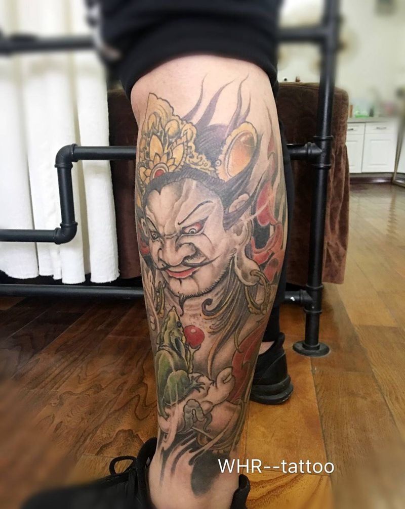 • T网红王老大花腿龙纹身图片_腿部新传统纹身图案